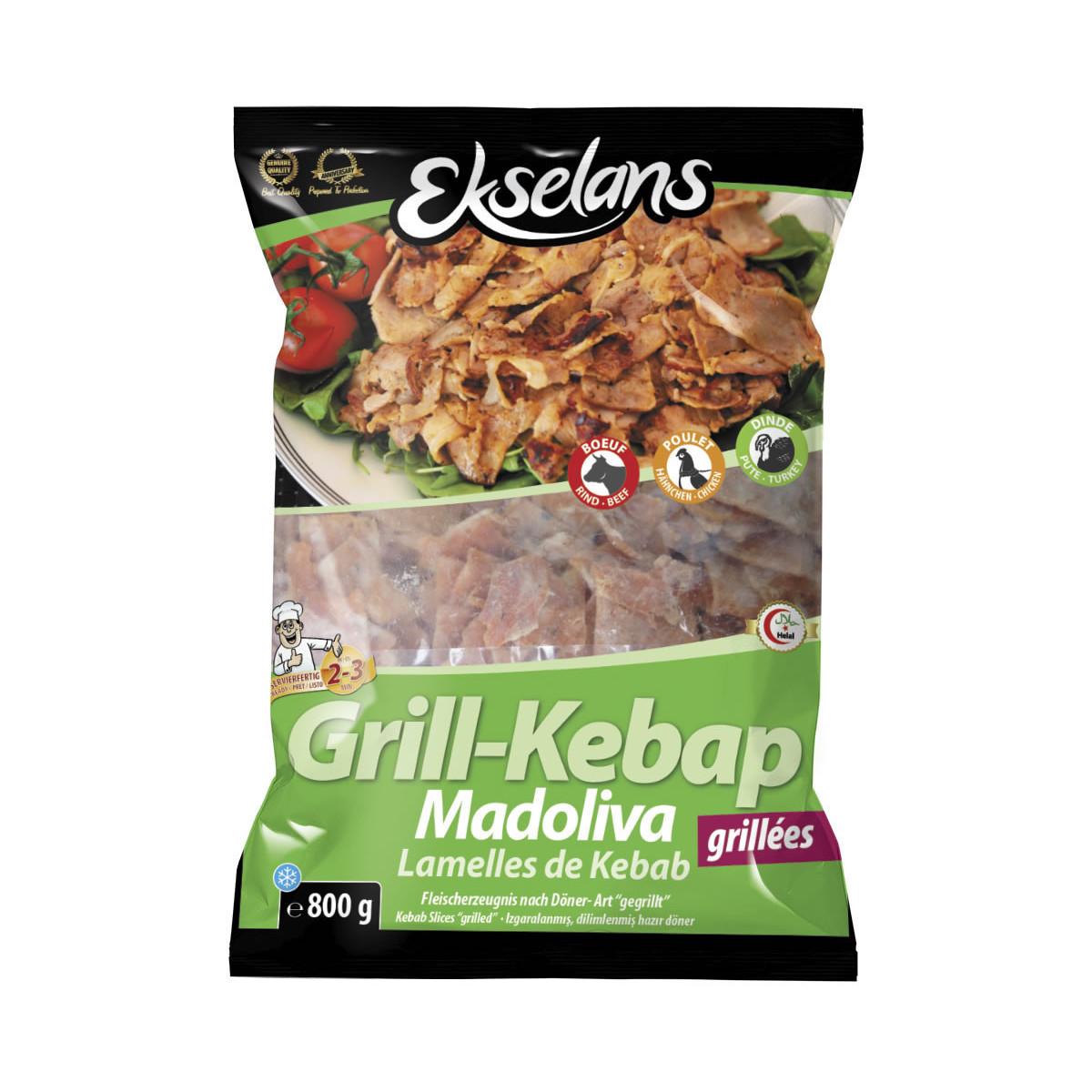 EKSELANS LAMELLE KEBAP BOEUF DINDE POULET 800G